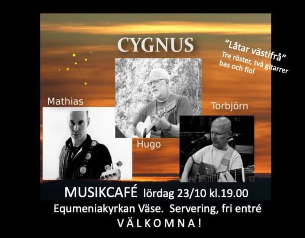 Musikcafé med Cygnus i Equmeniakyrkan Väse lördag 23 oktober kl. 19.00.